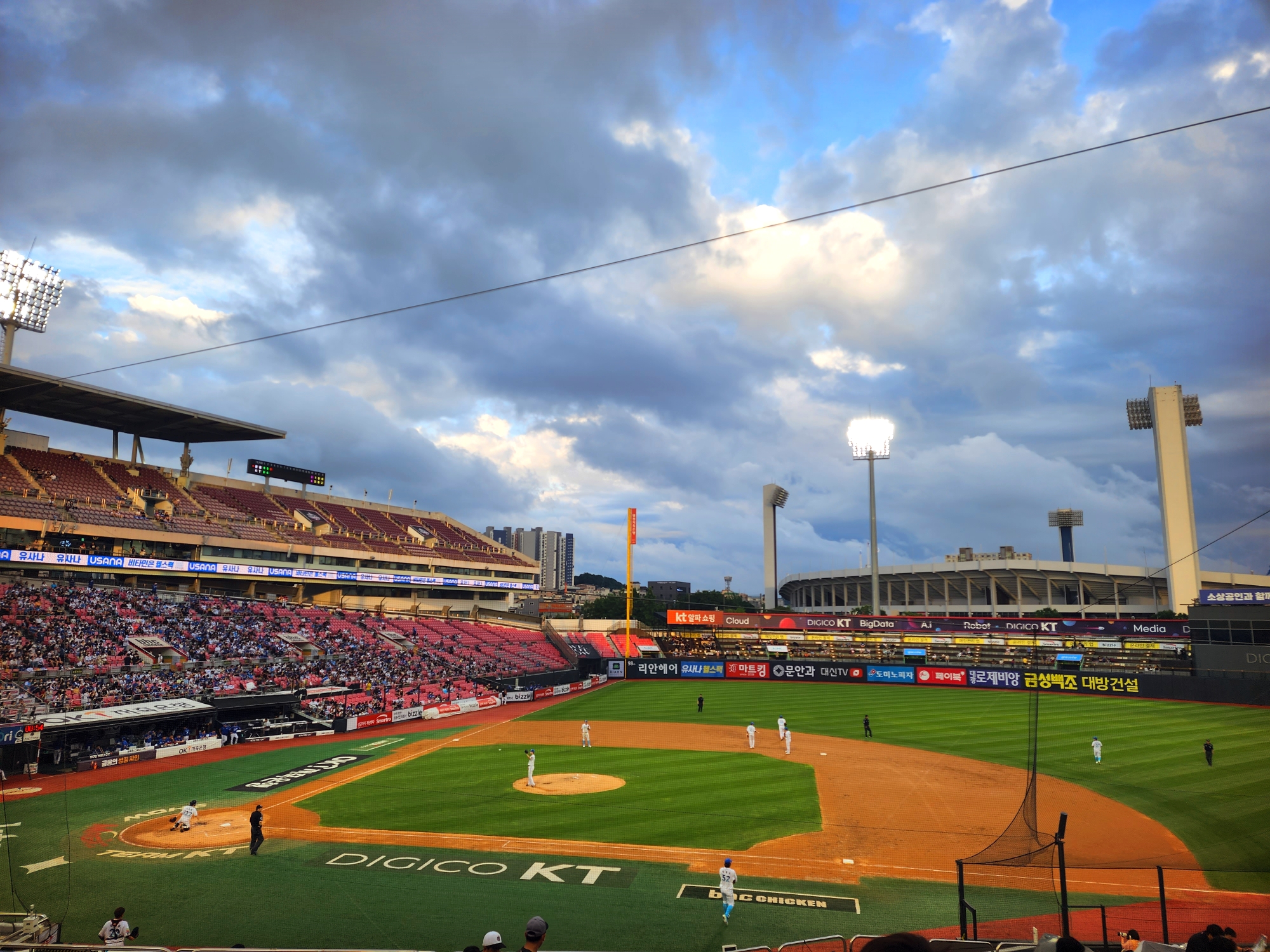 주말에 야구를 보러갔다.
